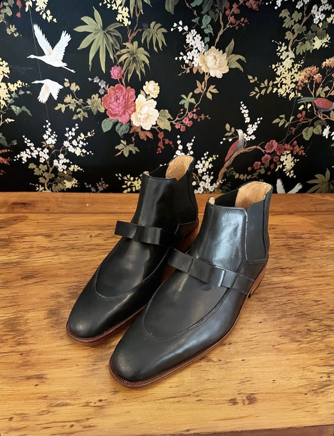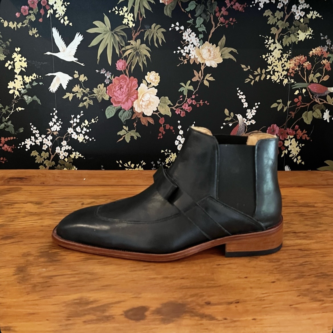 Botín de cuero, forrados en cuero y hechos a mano, con elásticos laterales , planta de suela y tacón de 3,5 cm. HORMA NORMAL, solicitar en la numeración que habitualmente se calza. Producto en stock.