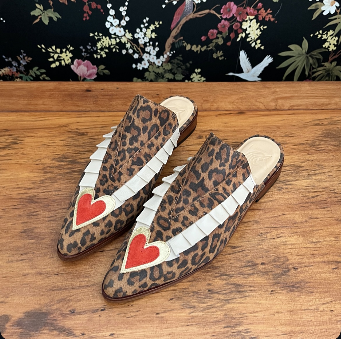Puntilla de cuero, forradas en cuero y hechas a mano, planta de suela y tacón de 3 cm.