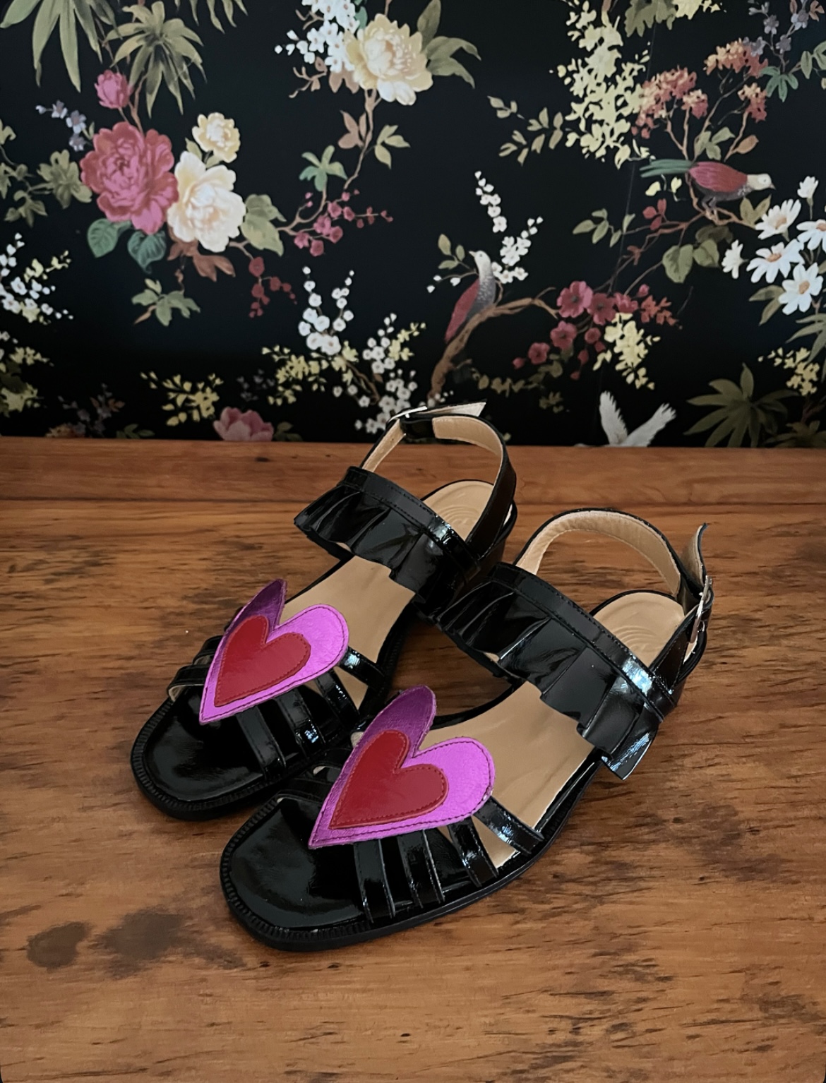 Sandalia de cuero, forradas en cuero y hechas a mano,con correa ajustable en talón, planta de suela y tacón de 4 cm.