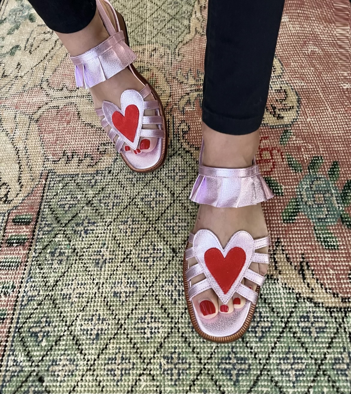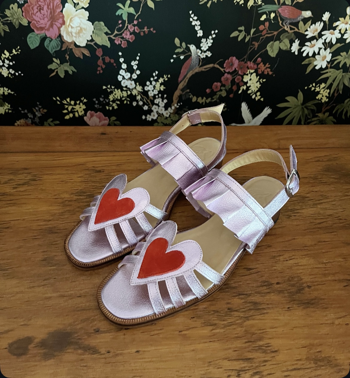 Sandalia de cuero, forradas en cuero y hechas a mano,con correa ajustable en talón, planta de suela y tacón de 4 cm.