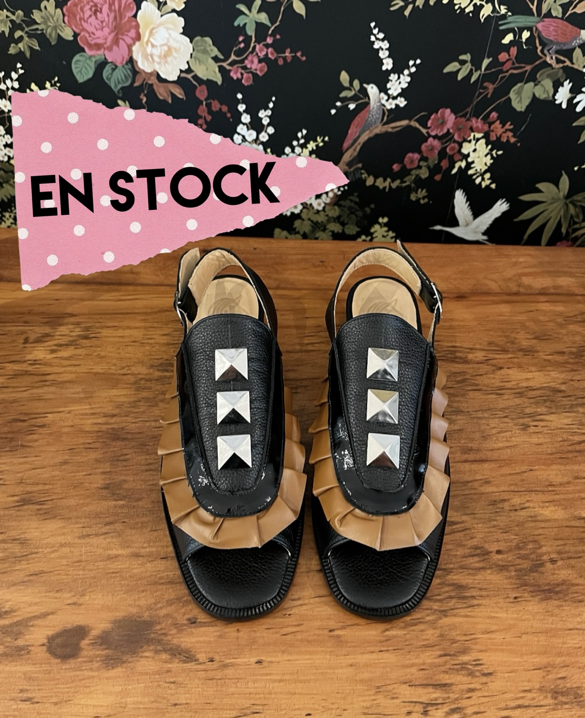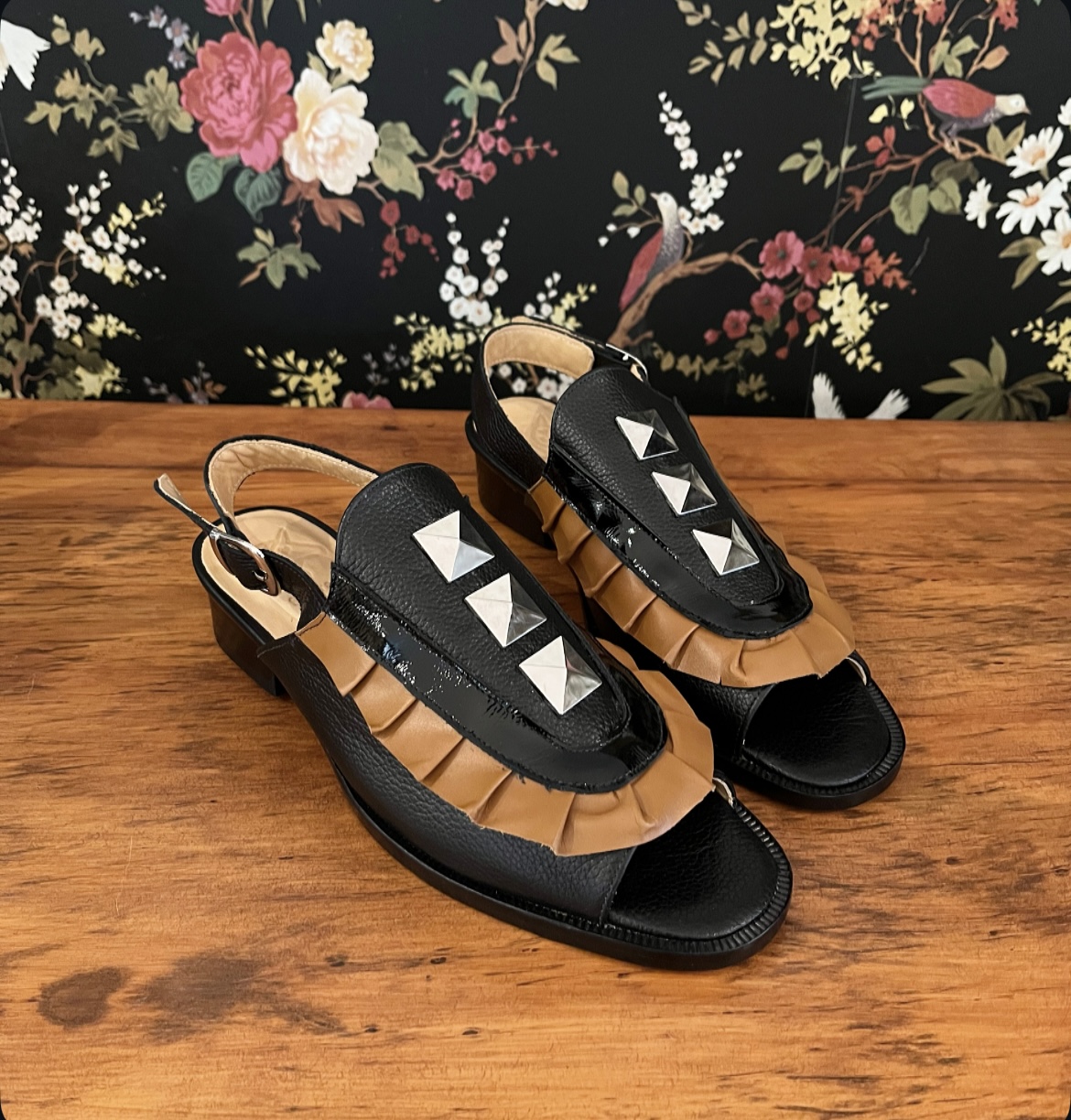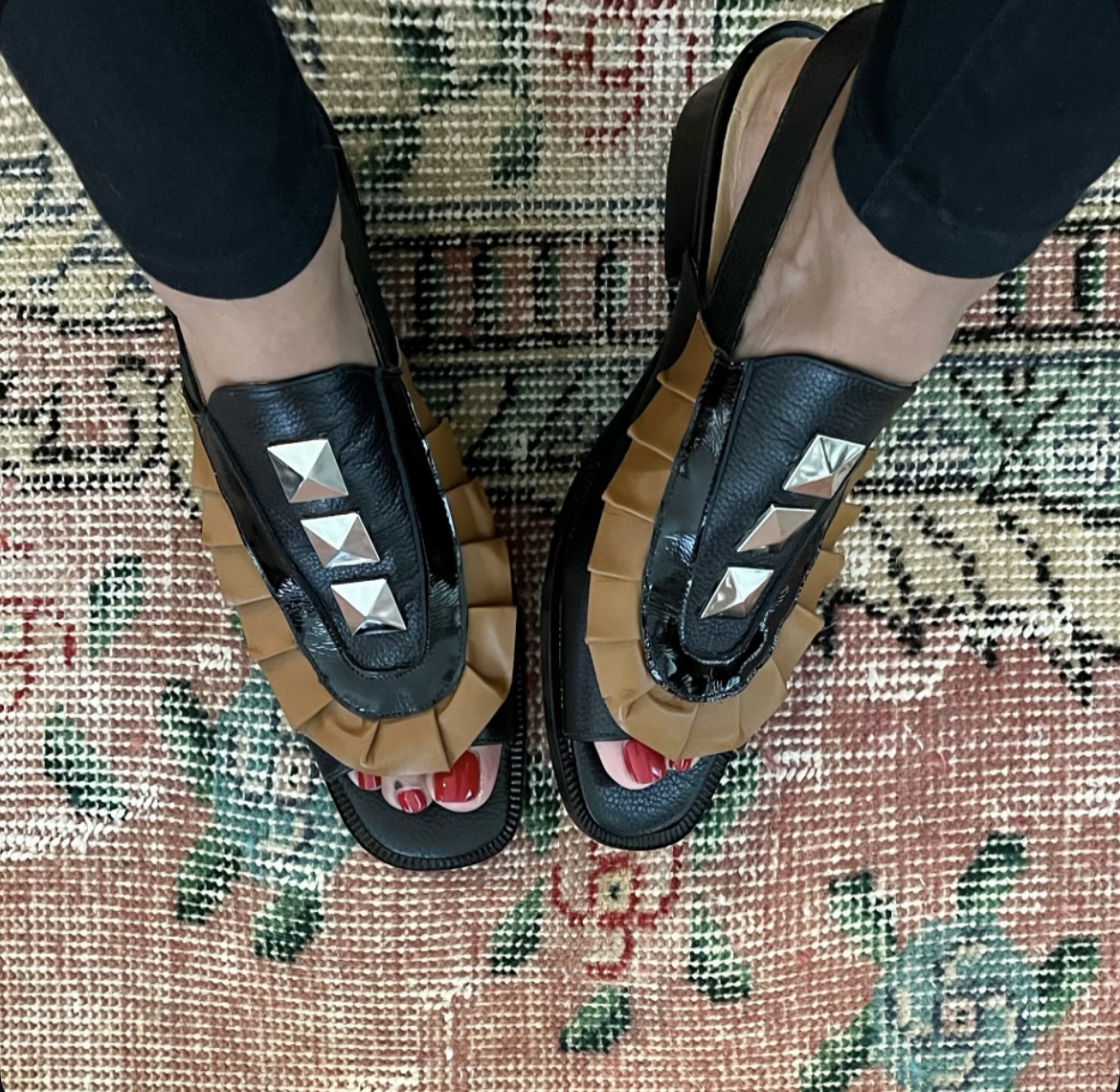 Sandalia Domitila negro graneado, camel y richato negro